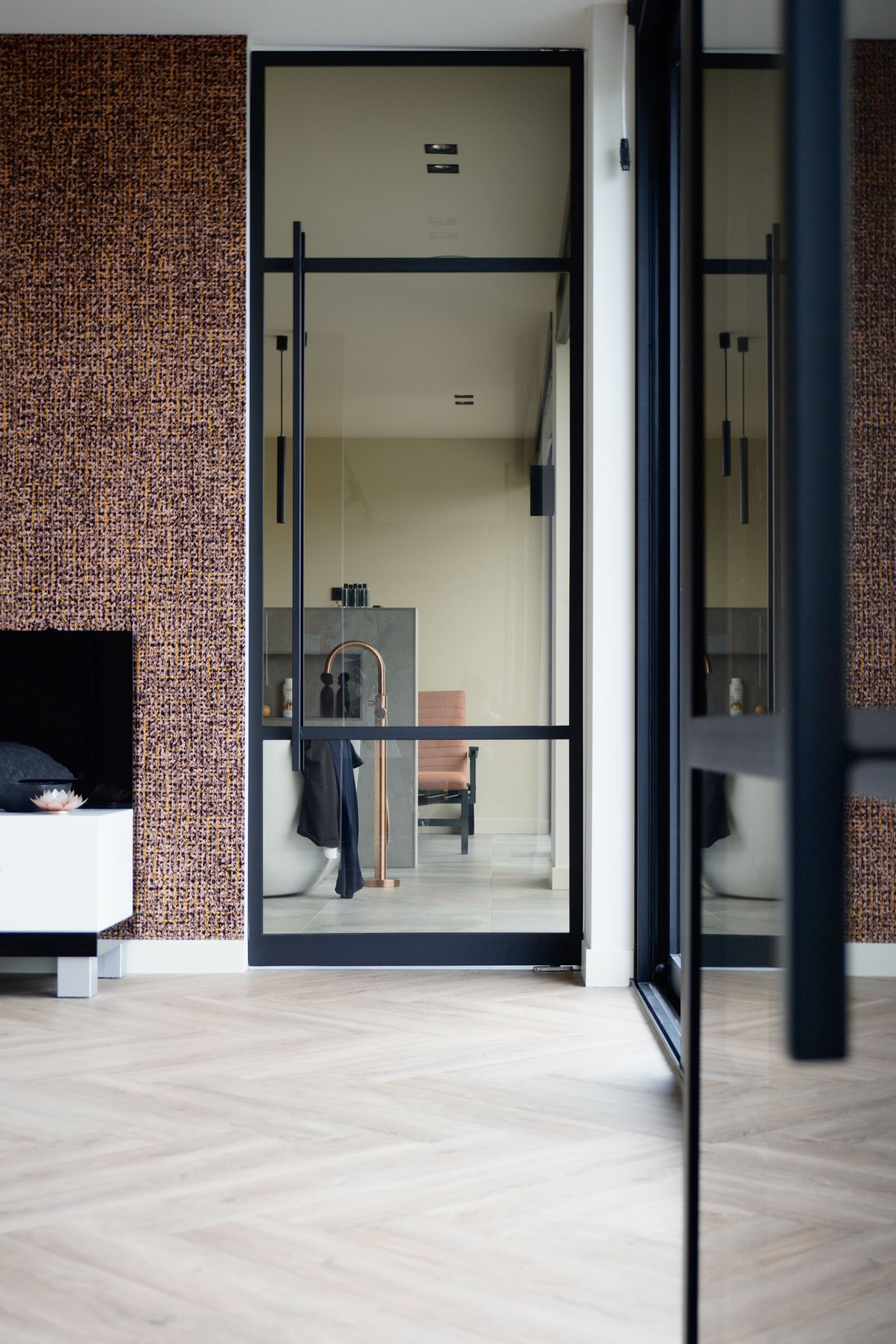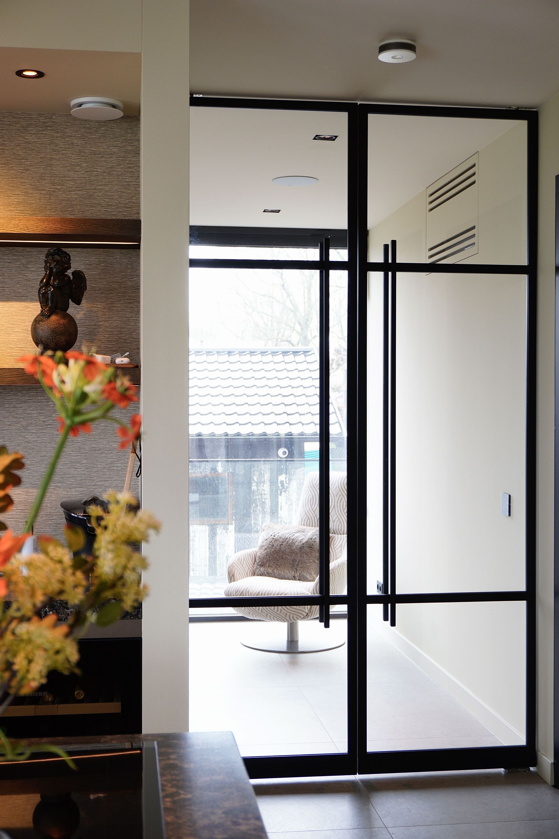 Met hun zuivere lijnen en contrasterende kleur voegen deze taatsdeuren niet alleen functioneel een scheiding toe, maar ook een eigentijds accent dat past in zowel moderne lofts als klassiek vormgegeven interieurs. Een tijdloze oplossing waarin techniek, vakmanschap en lichtinval samensmelten.