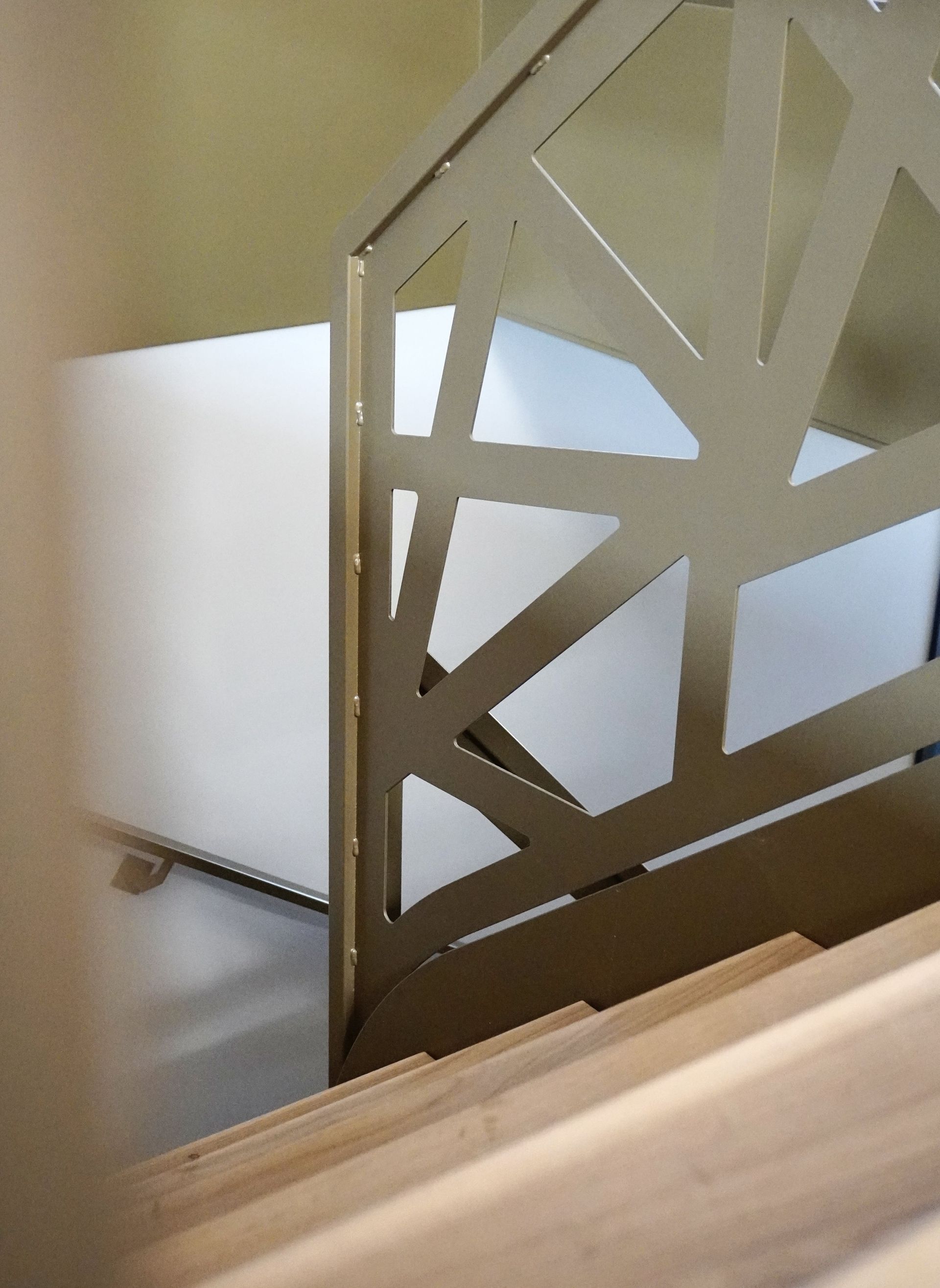 Van ontwerp en lasersnijden tot afwerking en montage – alles werd in eigen beheer in nauw overleg met de opdrachtgever gerealiseerd. Het resultaat is een designtrap die niet alleen verbindt, maar ook inspireert en fascineert..