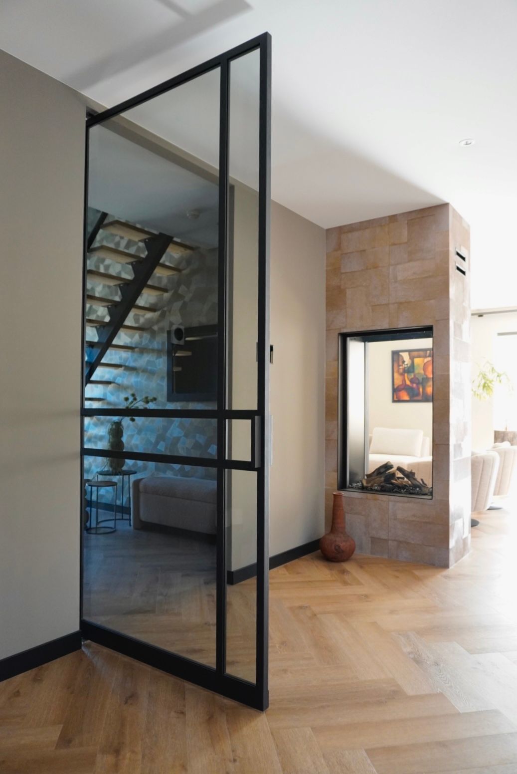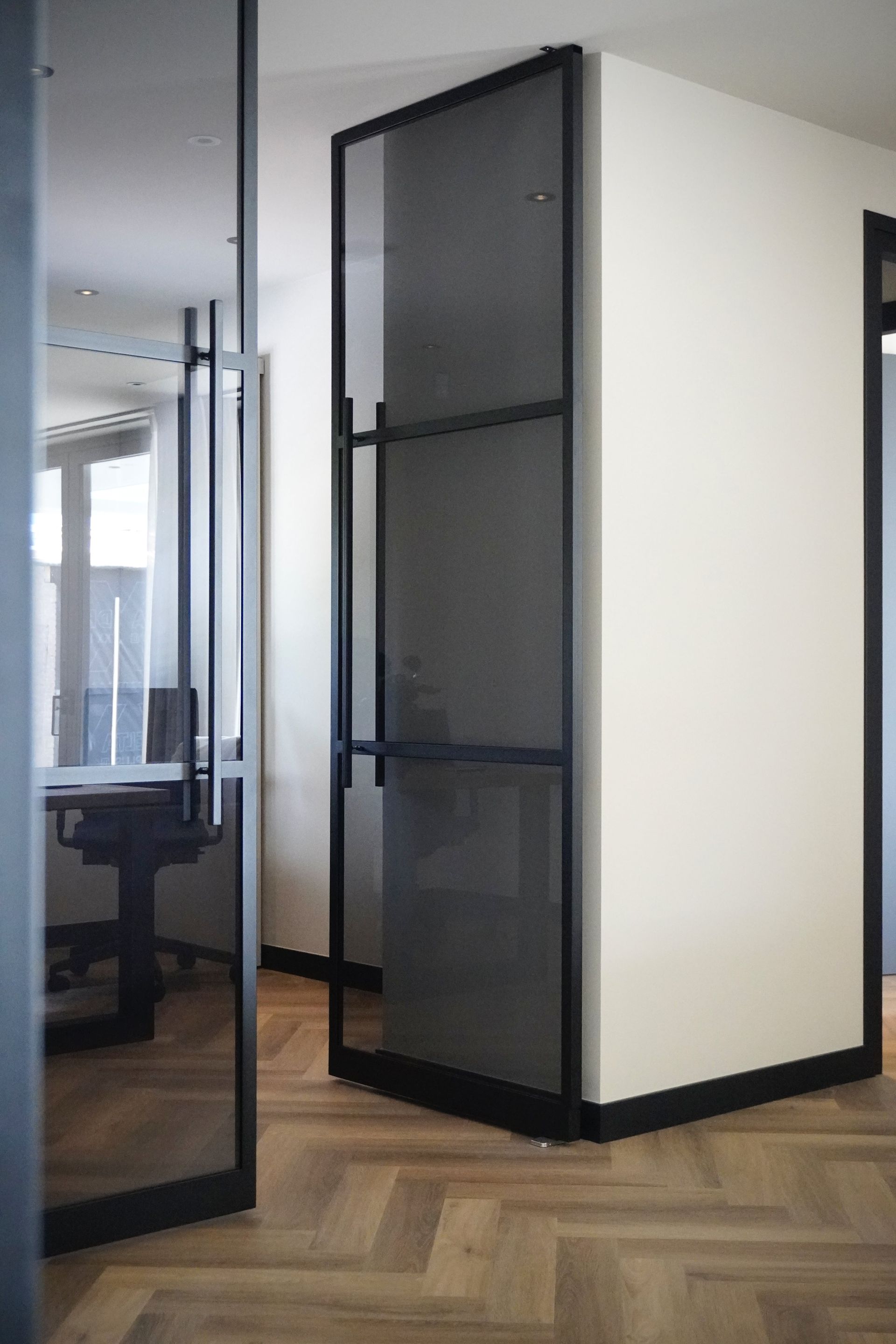 Commerciële gebouwen: In bedrijven en winkels worden stalen deuren met glas vaak gebruikt voor entreegebieden, glazen gevels of als tussenwanden in kantoorruimten, waarbij ze een moderne uitstraling bieden en tegelijkertijd functioneel zijn.